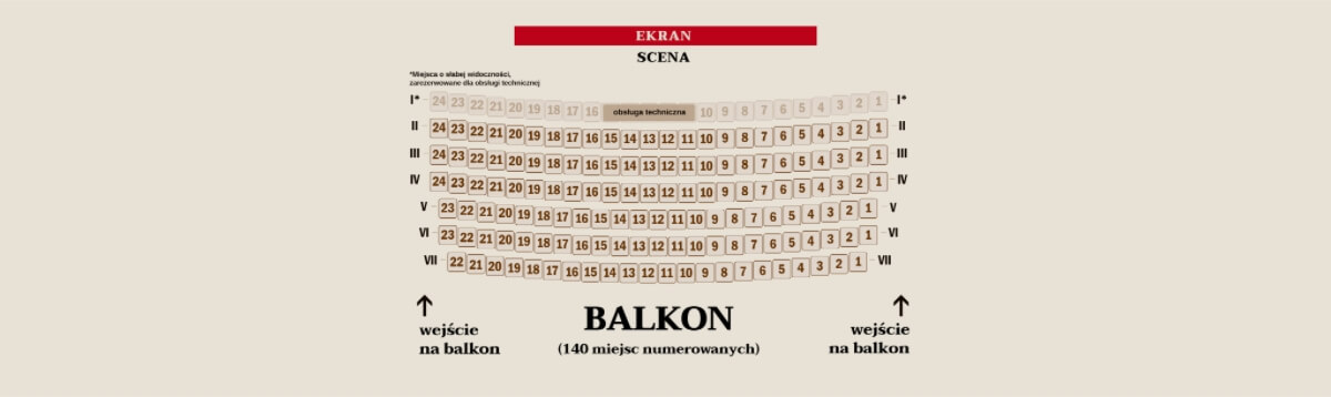 Miejsca o słabej widoczności, w I rzędzie na balkonie, są zarezerwowane dla obsługi technicznej.